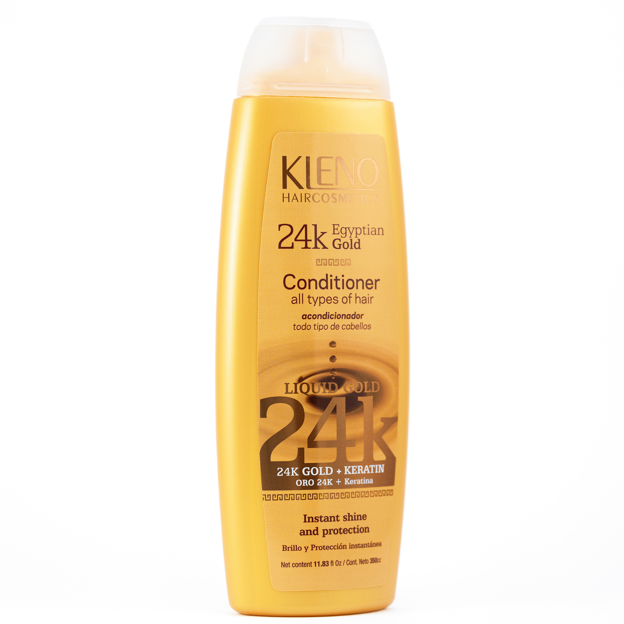 24k EGYPTIAN GOLD Conditioner nourishes and protects hair structure leaving it silky, flexible, and shiny. This product is developed with advanced silicones and suspended 24K Gold, an element that stimulates cell activity and makes the hair look healthier and younger. It also contains Keratin, an essential protein that moisturizes, repairs, and energizes hair for shiny, splendid, and seductive hair.